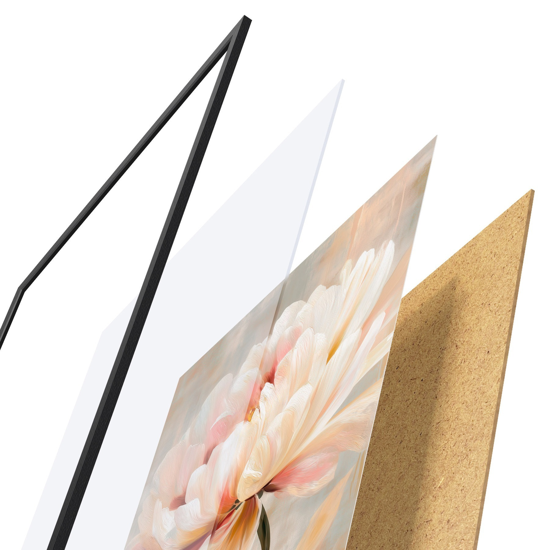 Das Poster besteht aus einem Rahmen, Plexiglas, einem gedruckten Bild und einer Rückwand aus Spanplatten. Dank der Halterungen auf der Rückseite kann das Poster sofort an die Wand gehängt werden.