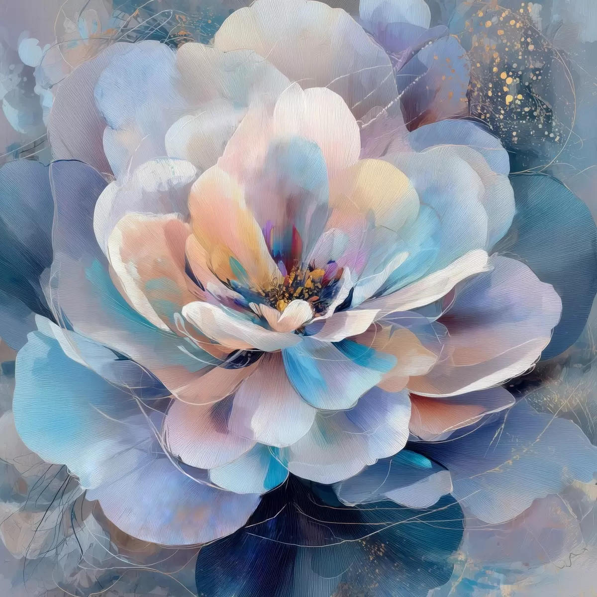 Poster Abstrakte Blume in Rosa- und Blautönen im zeitgenössischen Malstil Nr f48185