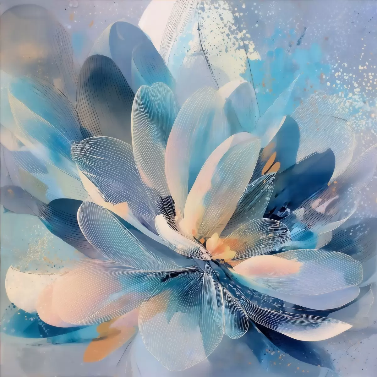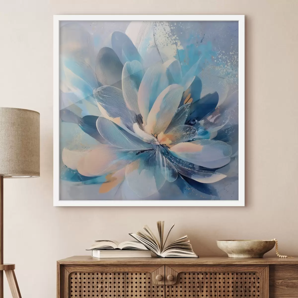 Poster Abstrakte Blume in kühlen Farbtönen im Kunstposter-Stil f48186