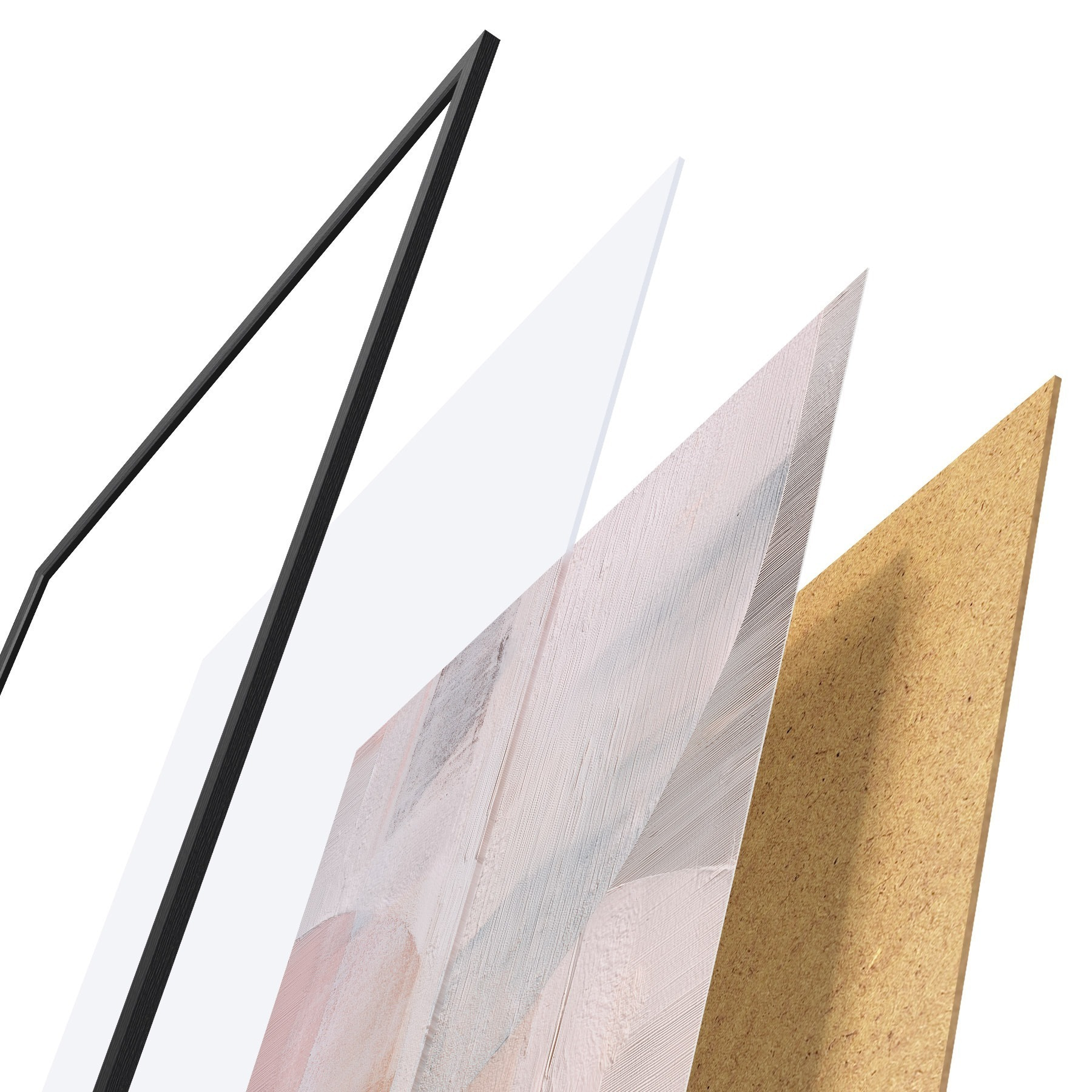 Das Poster besteht aus einem Rahmen, Plexiglas, einem gedruckten Bild und einer Rückwand aus Spanplatten. Dank der Halterungen auf der Rückseite kann das Poster sofort an die Wand gehängt werden.