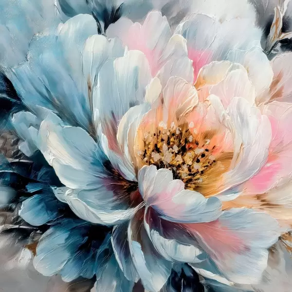 Poster Große Pfingstrose mit ausdrucksstarken, strukturierten Pinselstrichen im zeitgenössischen Malstil f48197