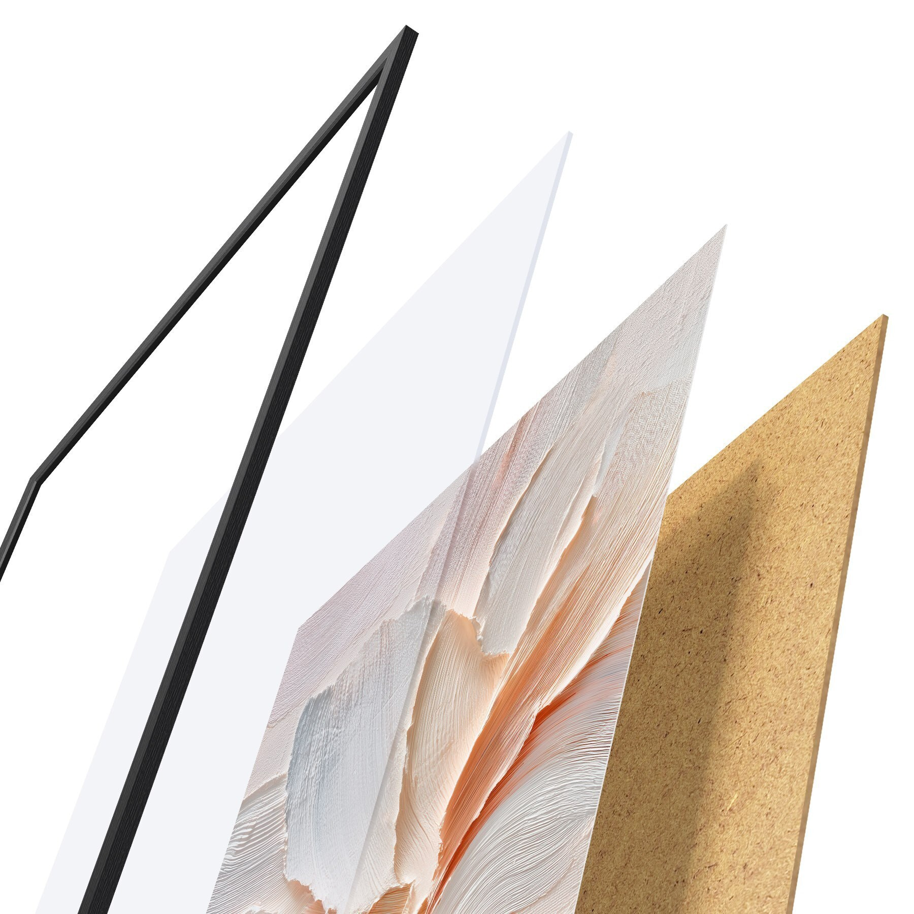 Das Poster besteht aus einem Rahmen, Plexiglas, einem gedruckten Bild und einer Rückwand aus Spanplatten. Dank der Halterungen auf der Rückseite kann das Poster sofort an die Wand gehängt werden.