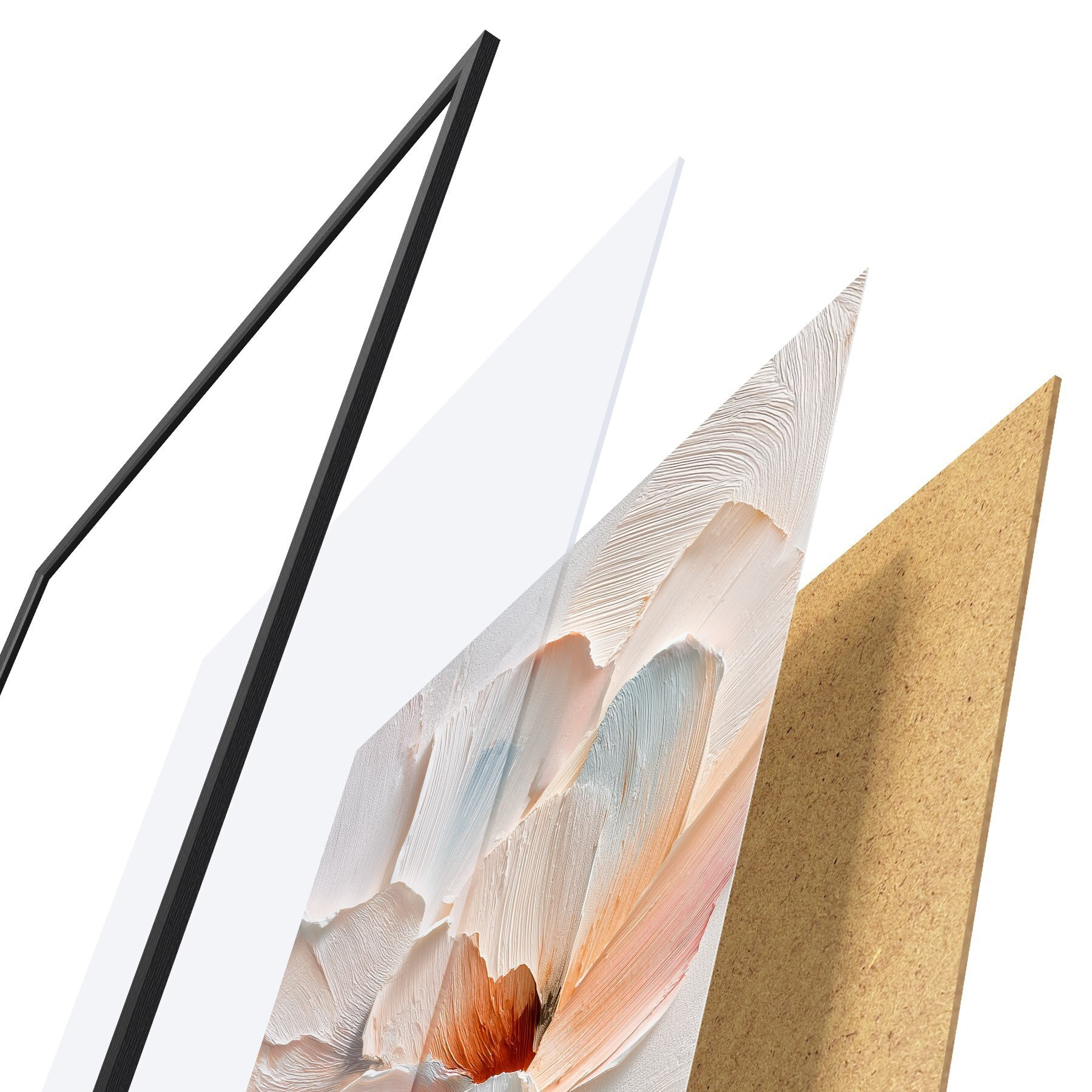 Das Poster besteht aus einem Rahmen, Plexiglas, einem gedruckten Bild und einer Rückwand aus Spanplatten. Dank der Halterungen auf der Rückseite kann das Poster sofort an die Wand gehängt werden.