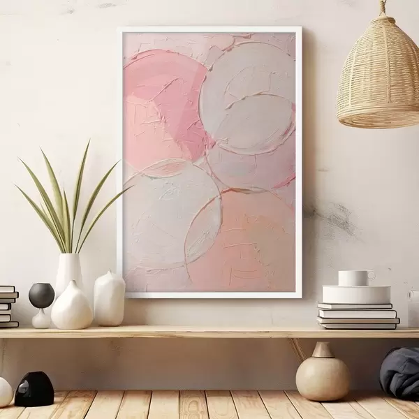 Poster Abstrakte Komposition mit Kreisen in zarten Rosatönen im Stil eines Ölgemäldes Nr f48207