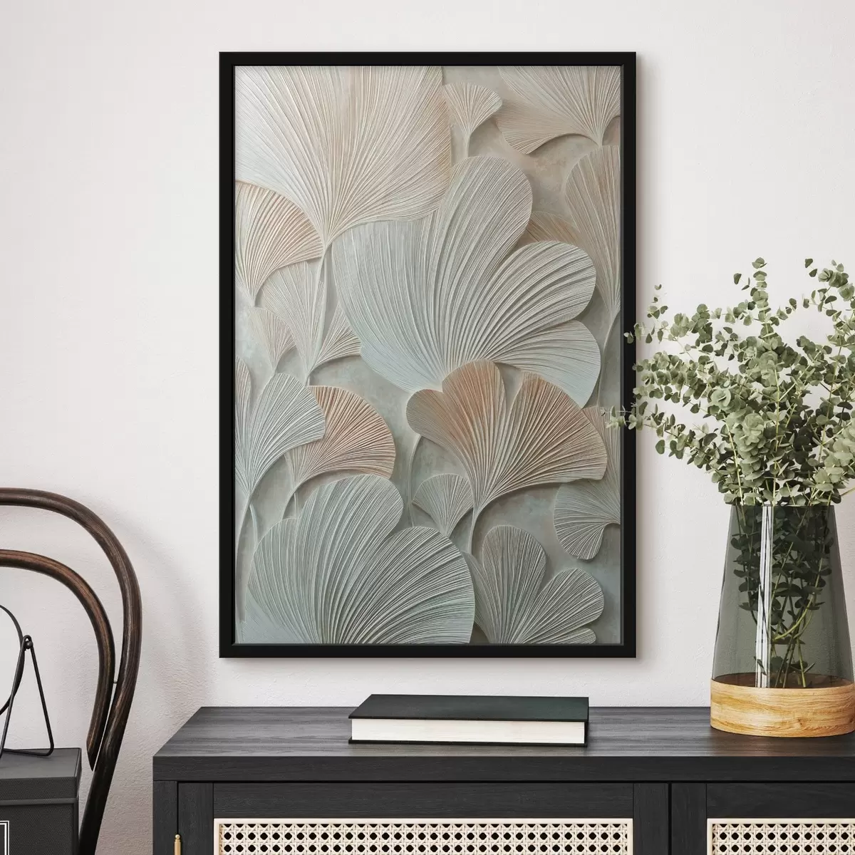 Poster Stilisierte Ginkgo-Biloba-Blätter mit plastischer Struktur in Pastelltönen f48209