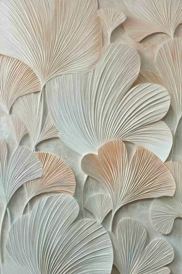 Poster Stilisierte Ginkgo-Biloba-Blätter mit plastischer Struktur in Pastelltönen f48209