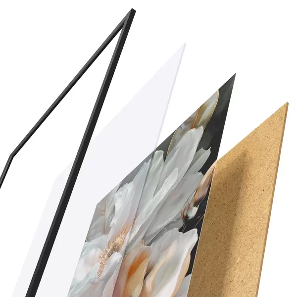 Das Poster besteht aus einem Rahmen, Plexiglas, einem gedruckten Bild und einer Rückwand aus Spanplatten. Dank der Halterungen auf der Rückseite kann das Poster sofort an die Wand gehängt werden.