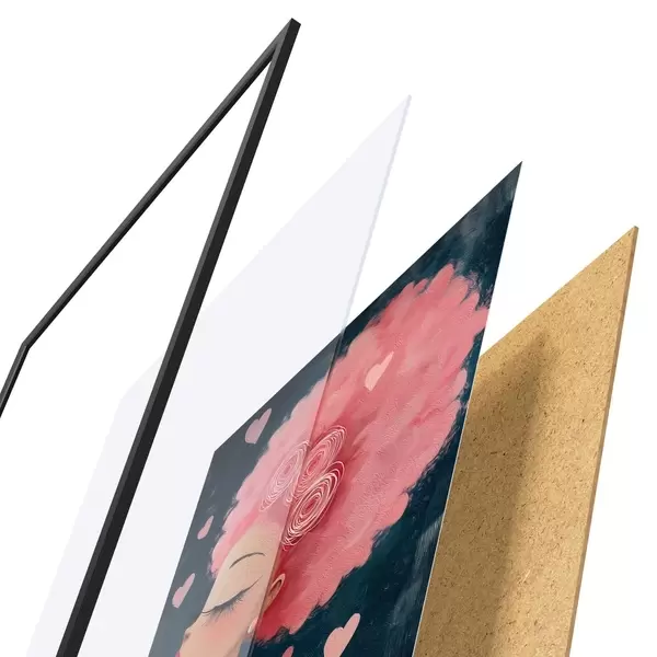Das Poster besteht aus einem Rahmen, Plexiglas, einem gedruckten Bild und einer Rückwand aus Spanplatten. Dank der Halterungen auf der Rückseite kann das Poster sofort an die Wand gehängt werden.