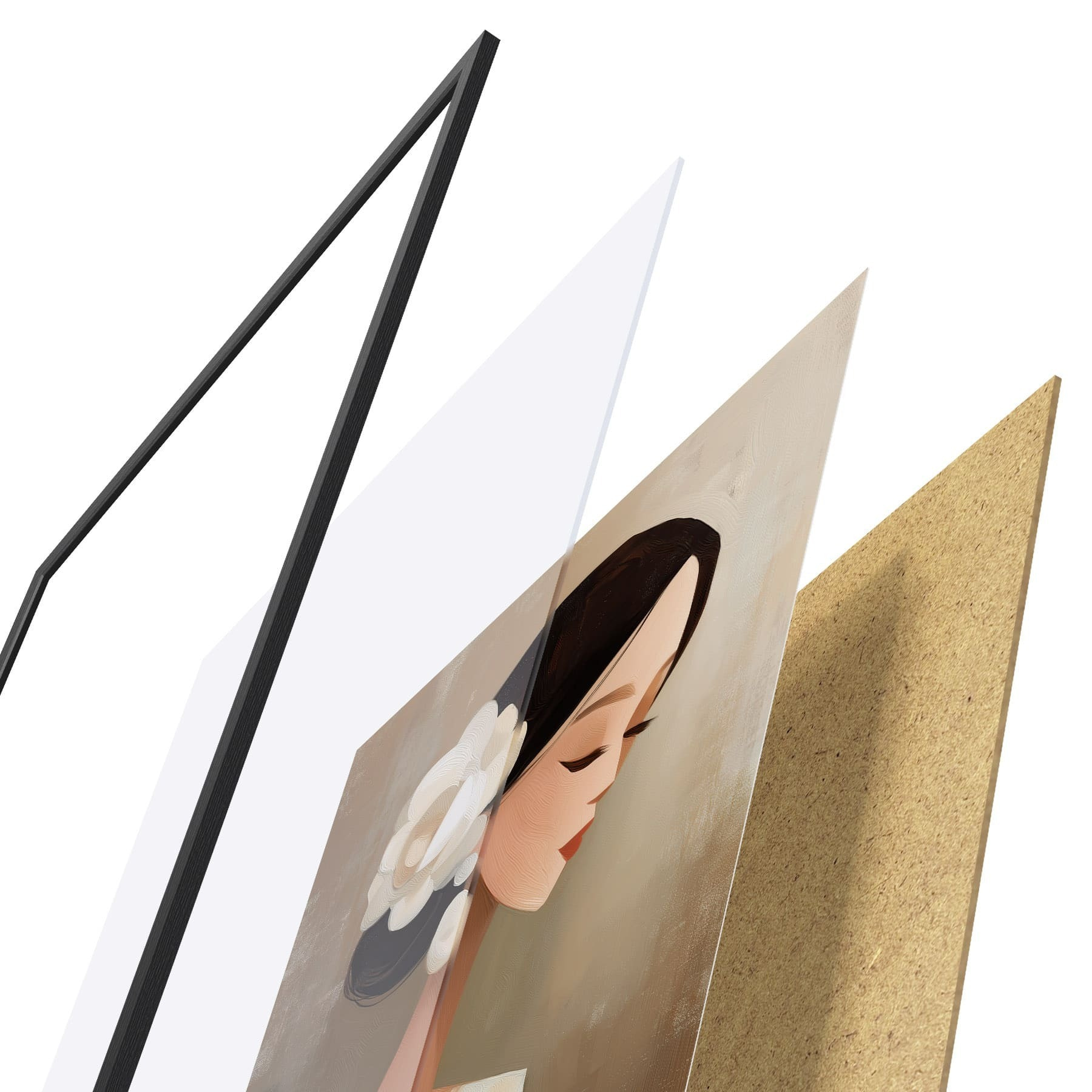 Das Poster besteht aus einem Rahmen, Plexiglas, einem gedruckten Bild und einer Rückwand aus Spanplatten. Dank der Halterungen auf der Rückseite kann das Poster sofort an die Wand gehängt werden.