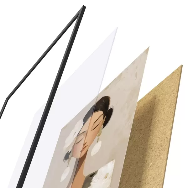 Das Poster besteht aus einem Rahmen, Plexiglas, einem gedruckten Bild und einer Rückwand aus Spanplatten. Dank der Halterungen auf der Rückseite kann das Poster sofort an die Wand gehängt werden.
