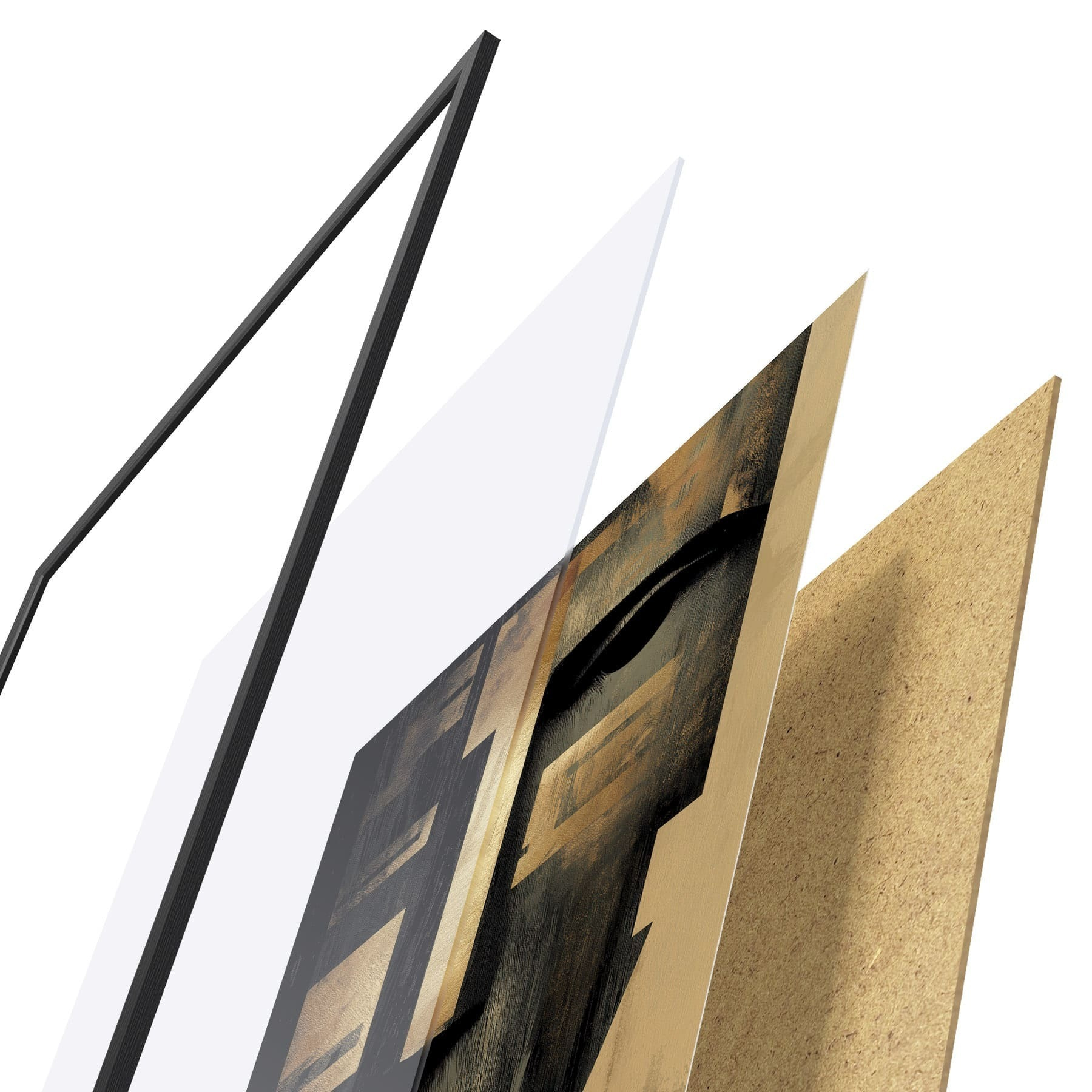Das Poster besteht aus einem Rahmen, Plexiglas, einem gedruckten Bild und einer Rückwand aus Spanplatten. Dank der Halterungen auf der Rückseite kann das Poster sofort an die Wand gehängt werden.