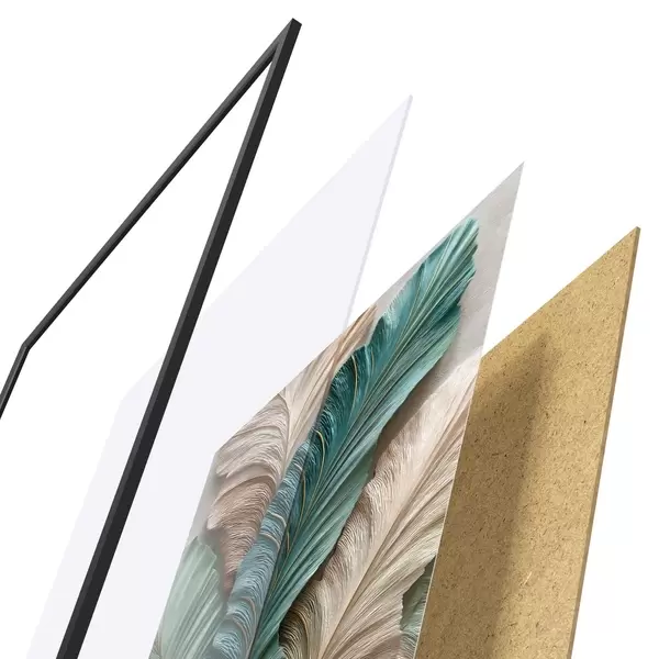 Das Poster besteht aus einem Rahmen, Plexiglas, einem gedruckten Bild und einer Rückwand aus Spanplatten. Dank der Halterungen auf der Rückseite kann das Poster sofort an die Wand gehängt werden.