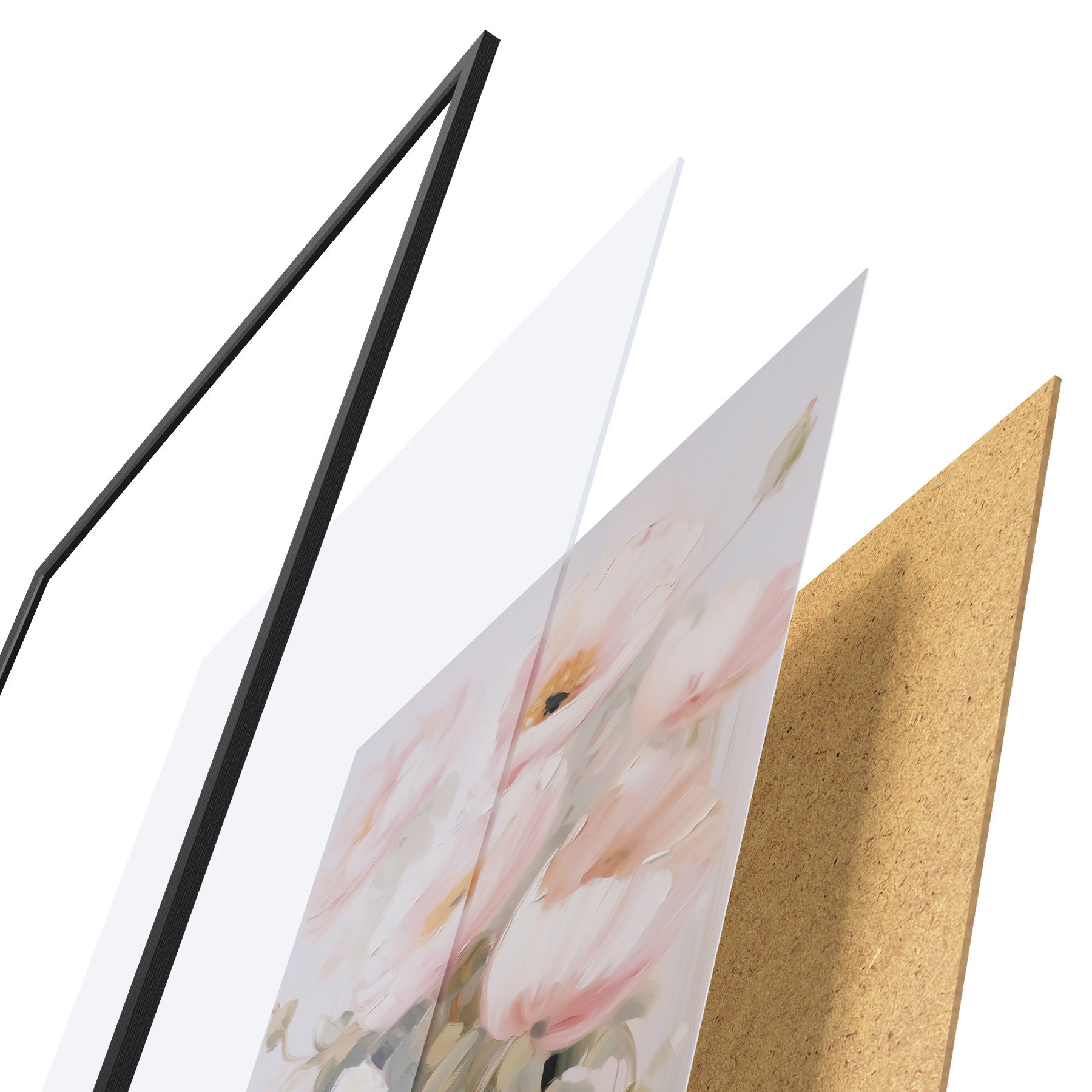 Das Poster besteht aus einem Rahmen, Plexiglas, einem gedruckten Bild und einer Rückwand aus Spanplatten. Dank der Halterungen auf der Rückseite kann das Poster sofort an die Wand gehängt werden.