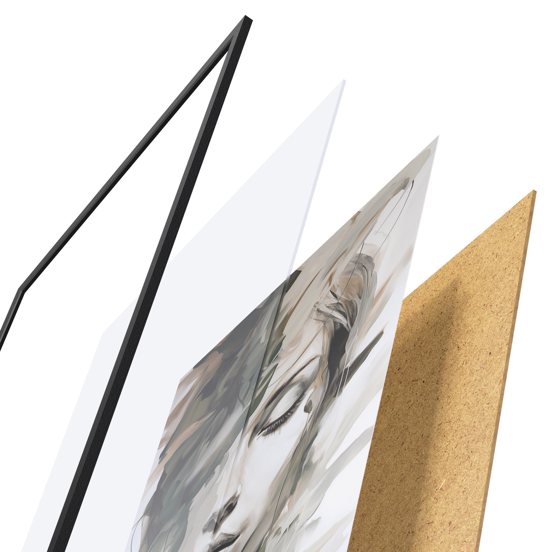 Das Poster besteht aus einem Rahmen, Plexiglas, einem gedruckten Bild und einer Rückwand aus Spanplatten. Dank der Halterungen auf der Rückseite kann das Poster sofort an die Wand gehängt werden.