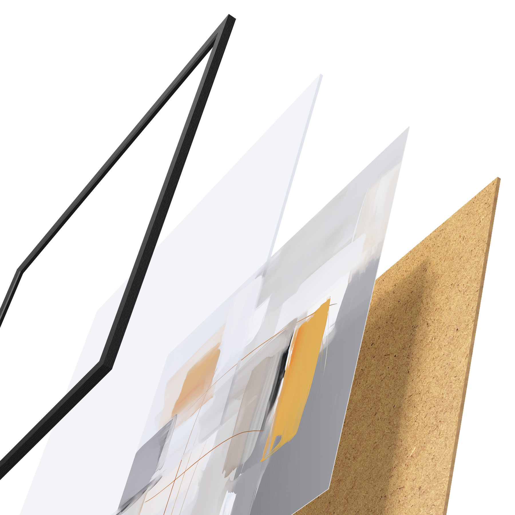 Das Poster besteht aus einem Rahmen, Plexiglas, einem gedruckten Bild und einer Rückwand aus Spanplatten. Dank der Halterungen auf der Rückseite kann das Poster sofort an die Wand gehängt werden.