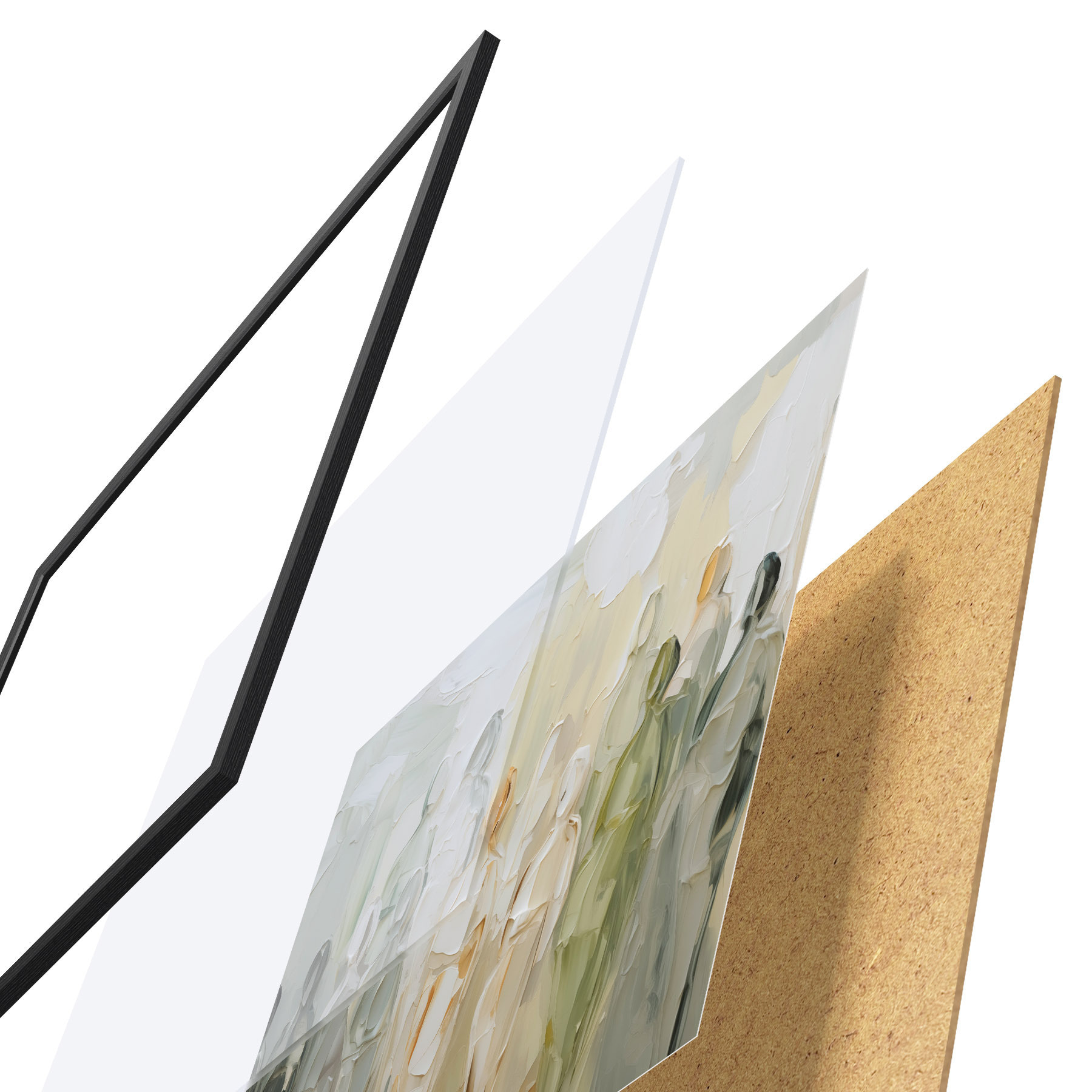 Das Poster besteht aus einem Rahmen, Plexiglas, einem gedruckten Bild und einer Rückwand aus Spanplatten. Dank der Halterungen auf der Rückseite kann das Poster sofort an die Wand gehängt werden.