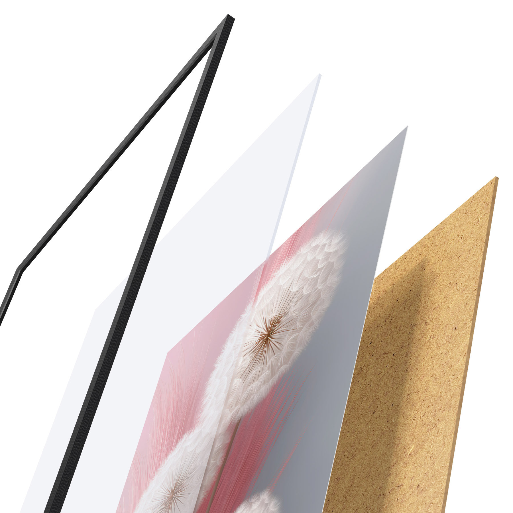 Das Poster besteht aus einem Rahmen, Plexiglas, einem gedruckten Bild und einer Rückwand aus Spanplatten. Dank der Halterungen auf der Rückseite kann das Poster sofort an die Wand gehängt werden.