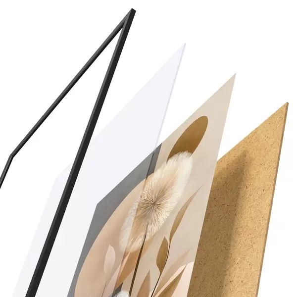 Das Poster besteht aus einem Rahmen, Plexiglas, einem gedruckten Bild und einer Rückwand aus Spanplatten. Dank der Halterungen auf der Rückseite kann das Poster sofort an die Wand gehängt werden.