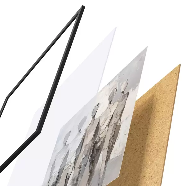 Das Poster besteht aus einem Rahmen, Plexiglas, einem gedruckten Bild und einer Rückwand aus Spanplatten. Dank der Halterungen auf der Rückseite kann das Poster sofort an die Wand gehängt werden.