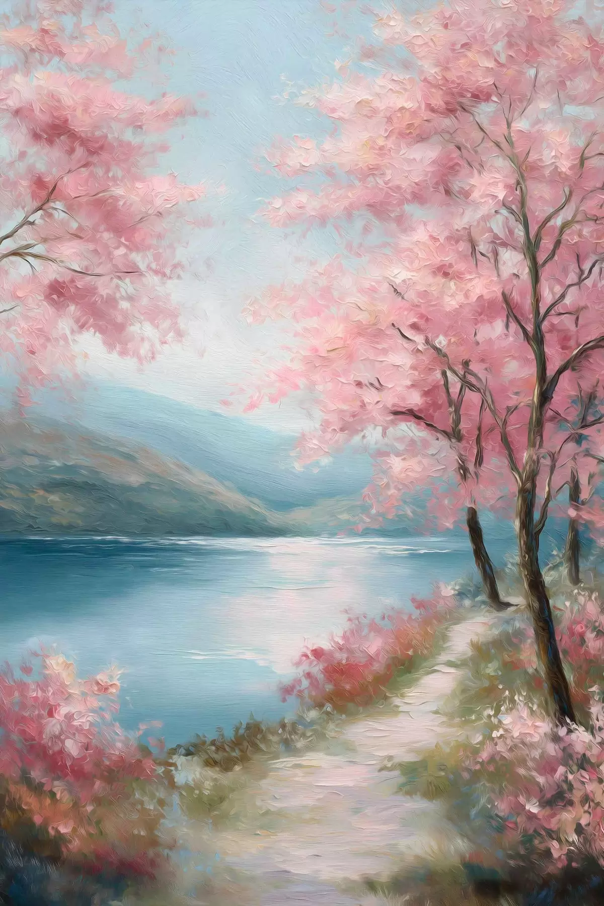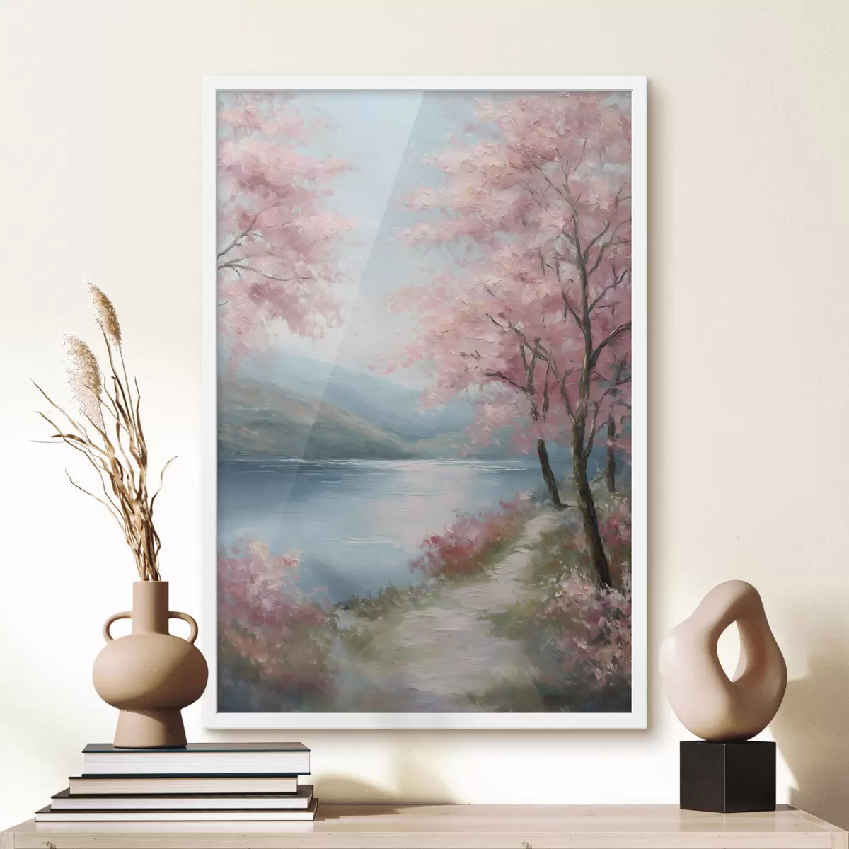 Poster Landschaft mit rosa Bäumen im Ölstil Nr f48289