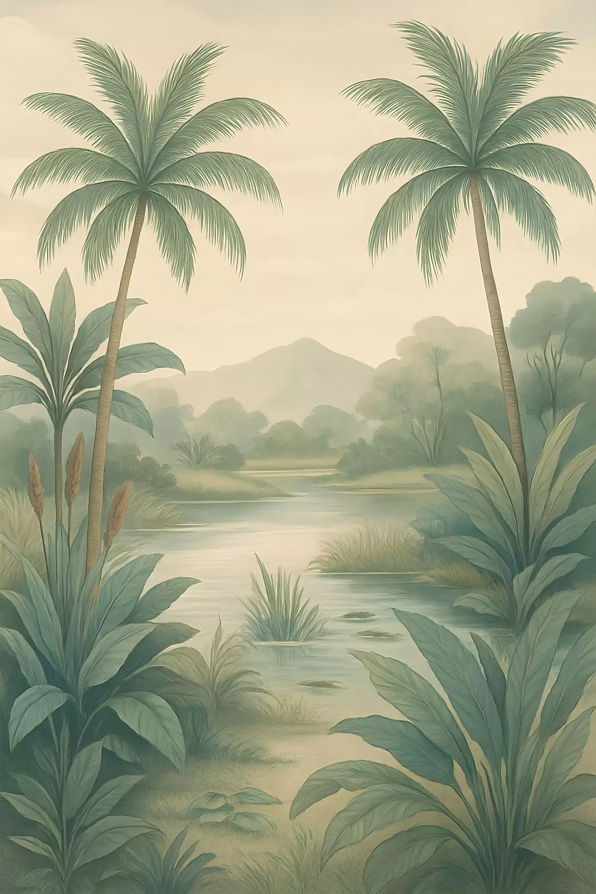 Poster Tropische Landschaft im Retro-Stil Nr f48296