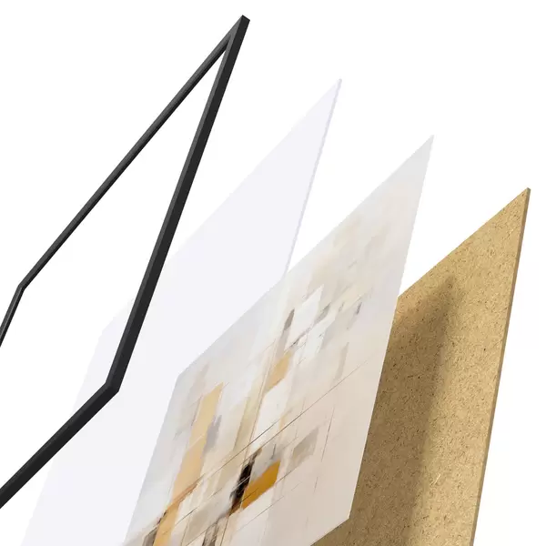 Das Poster besteht aus einem Rahmen, Plexiglas, einem gedruckten Bild und einer Rückwand aus Spanplatten. Dank der Halterungen auf der Rückseite kann das Poster sofort an die Wand gehängt werden.
