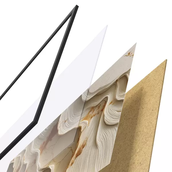 Das Poster besteht aus einem Rahmen, Plexiglas, einem gedruckten Bild und einer Rückwand aus Spanplatten. Dank der Halterungen auf der Rückseite kann das Poster sofort an die Wand gehängt werden.