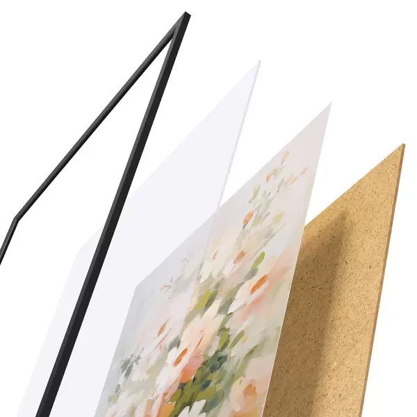 Das Poster besteht aus einem Rahmen, Plexiglas, einem gedruckten Bild und einer Rückwand aus Spanplatten. Dank der Halterungen auf der Rückseite kann das Poster sofort an die Wand gehängt werden.