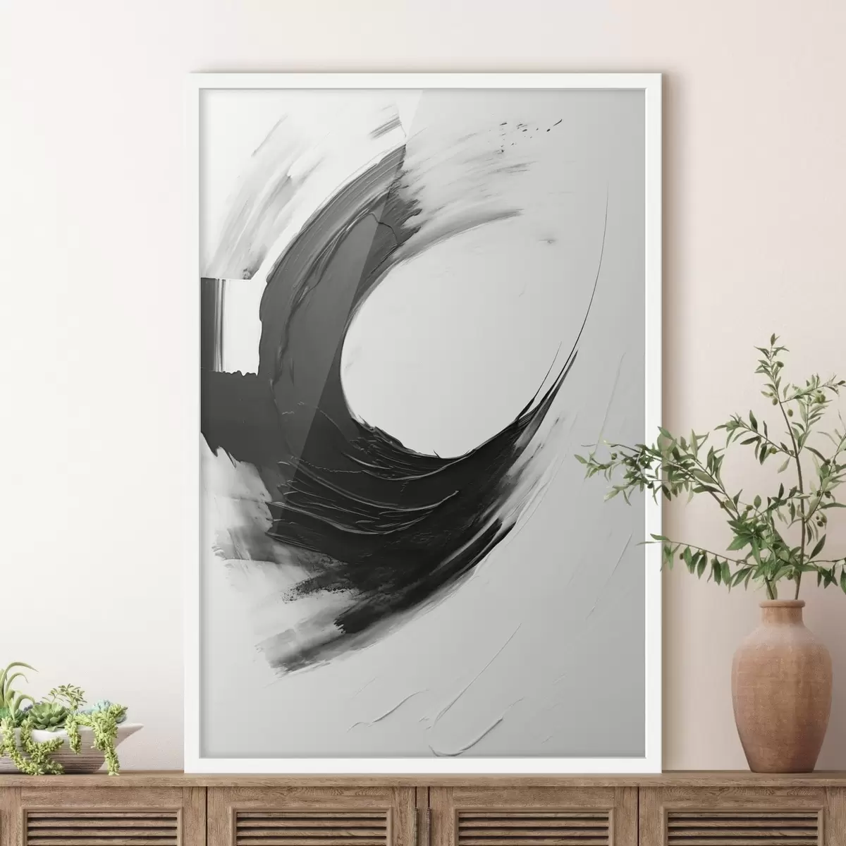 Poster Abstrakter schwarzer Pinselstrich auf hellem Hintergrund Nr f48340