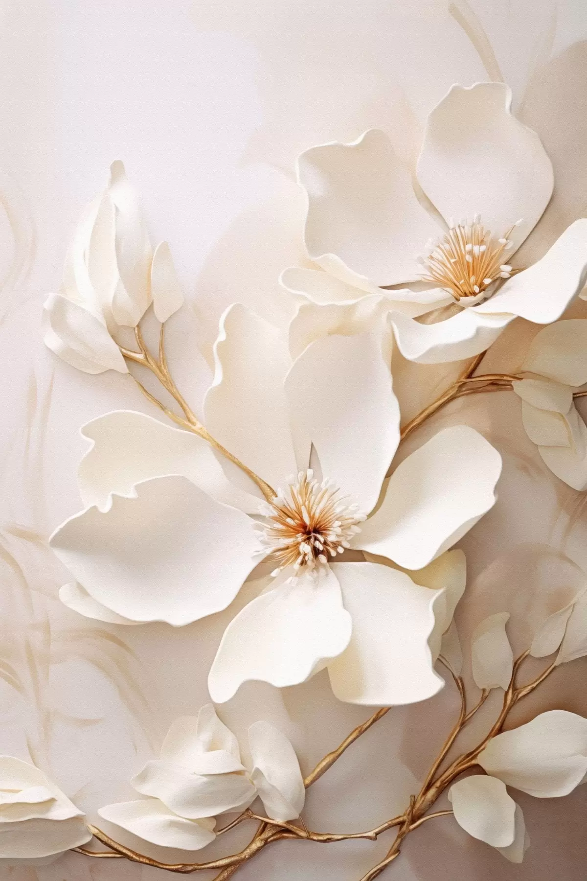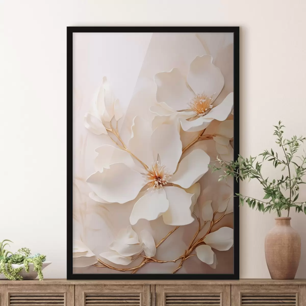 Poster Helle Blumen mit zarten Zweigen vor pastellfarbenem Hintergrund Nr f48348