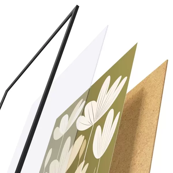 Das Poster besteht aus einem Rahmen, Plexiglas, einem gedruckten Bild und einer Rückwand aus Spanplatten. Dank der Halterungen auf der Rückseite kann das Poster sofort an die Wand gehängt werden.