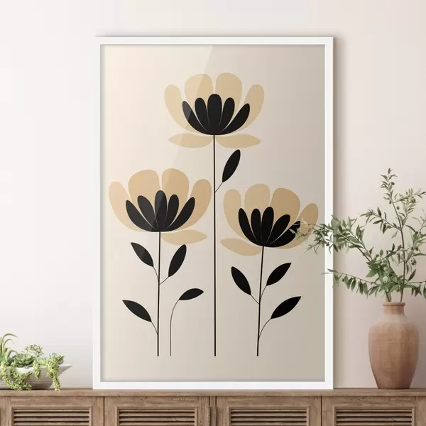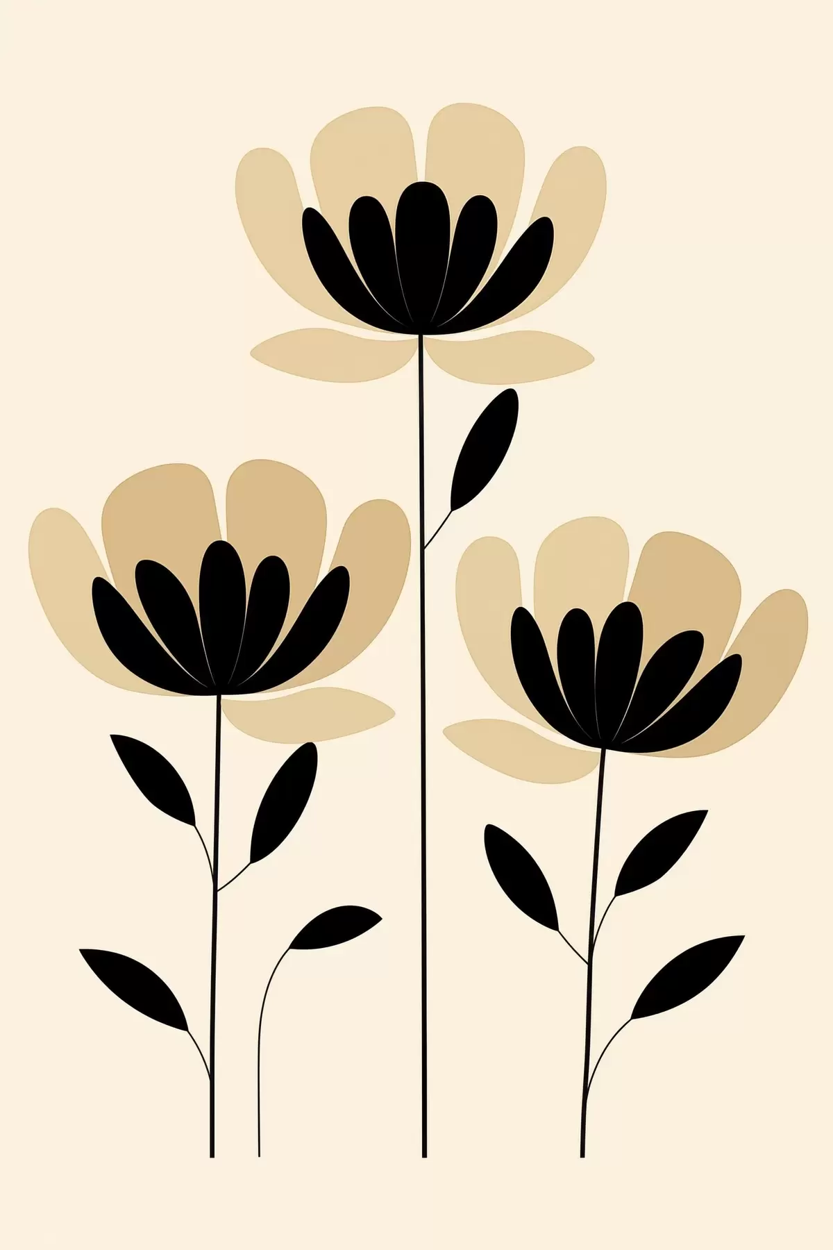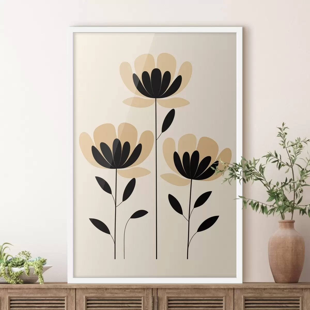Poster Minimalistische Blumen in Schwarz und Beige Nr f48353