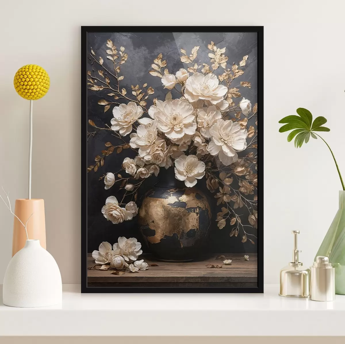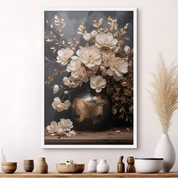 Poster Helle Blumen in einer Vase mit dekorativen Blättern Nr f48356