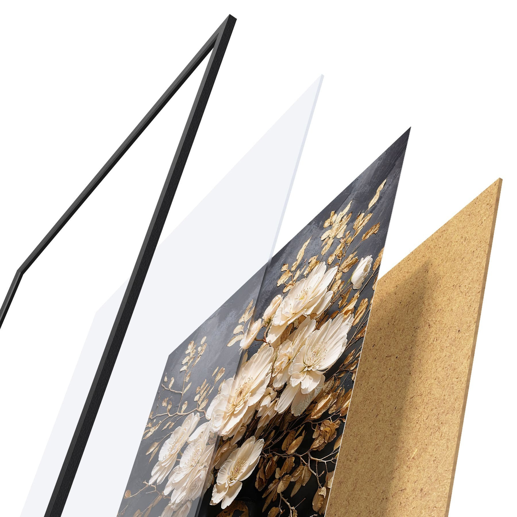 Das Poster besteht aus einem Rahmen, Plexiglas, einem gedruckten Bild und einer Rückwand aus Spanplatten. Dank der Halterungen auf der Rückseite kann das Poster sofort an die Wand gehängt werden.