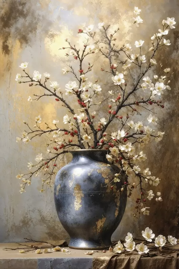 Poster Blühende Zweige in einer Vase vor neutralem Hintergrund Nr f48361
