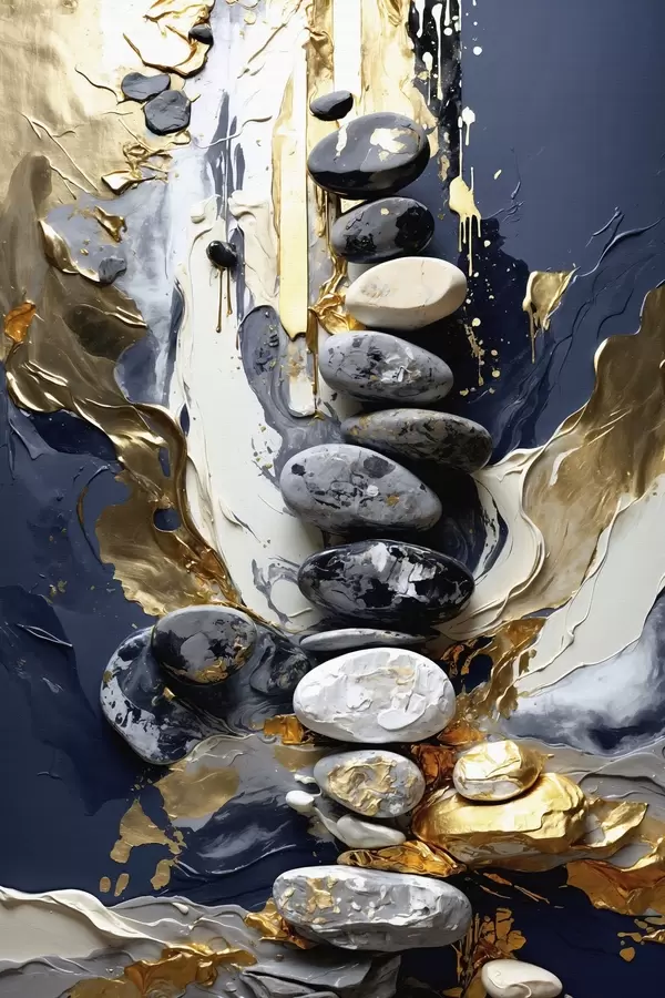 Poster Abstrakte Komposition mit Steinen und strukturierten Pinselstrichen Nr f48362