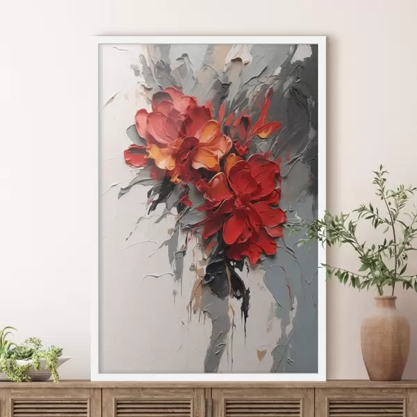 Poster Rote Blumen mit strukturierten Strichen auf hellem Hintergrund Nr f48365