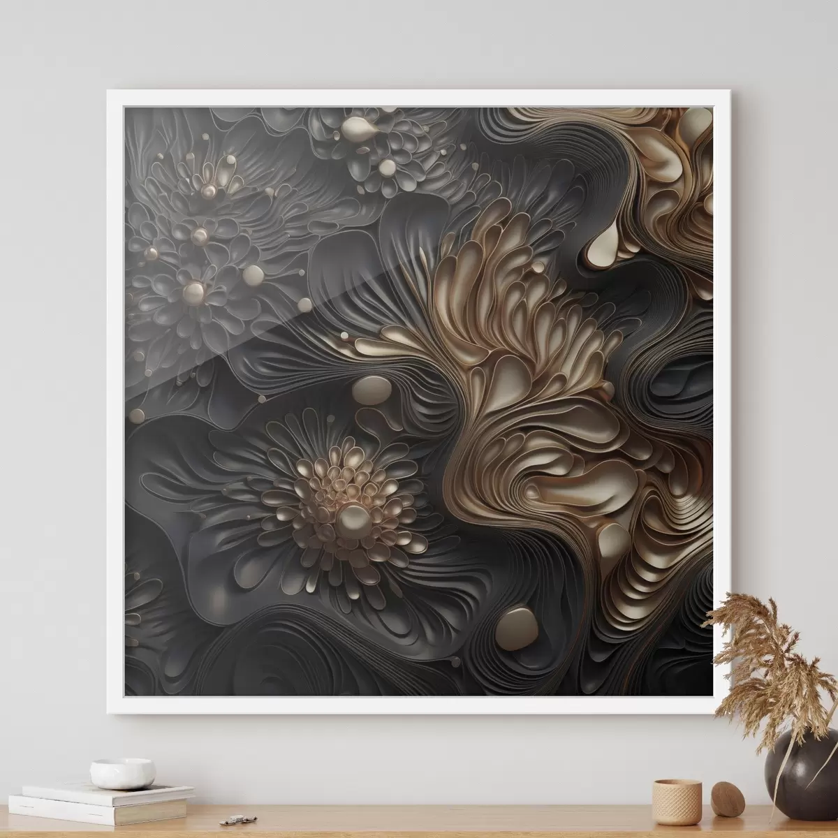 Poster Abstrakte, fließende, organische dunkle Formen, die ein strukturiertes Werk der modernen Kunst bilden Nr f48384