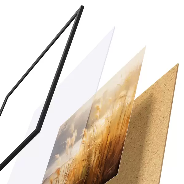 Das Poster besteht aus einem Rahmen, Plexiglas, einem gedruckten Bild und einer Rückwand aus Spanplatten. Dank der Halterungen auf der Rückseite kann das Poster sofort an die Wand gehängt werden.