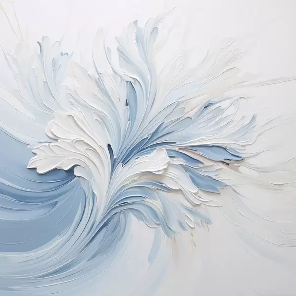 Poster Ein abstraktes Blumenmuster in Weiß und Hellblau mit strukturierten Blütenblättern und geschwungenen Linien Nr f48395
