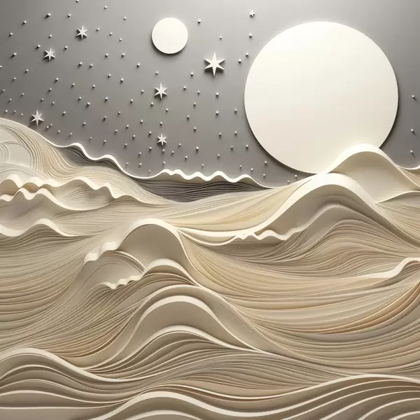 Poster Eine minimalistisch stilisierte Landschaft mit sanften Hügeln und einem großen Mond am Sternenhimmel, abstrakte Kunst f48401