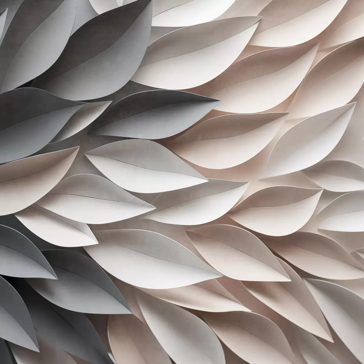 Poster Ein strukturiertes, sich überlappendes abstraktes Blattmuster in neutralen Beige-, Creme- und Grautönen f48408