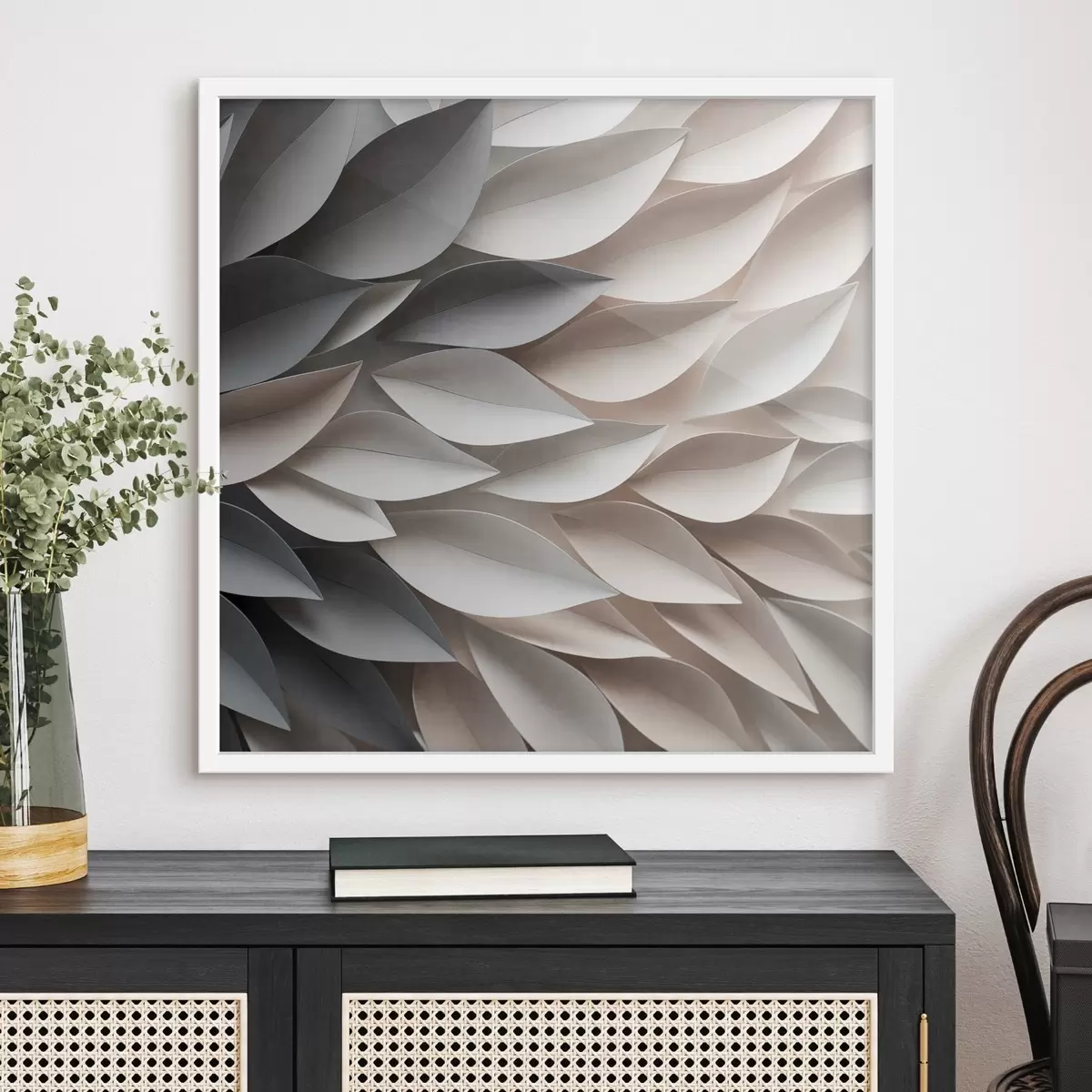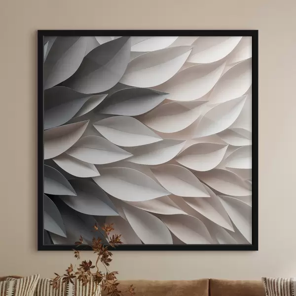 Poster Ein strukturiertes, sich überlappendes abstraktes Blattmuster in neutralen Beige-, Creme- und Grautönen Nr f48408