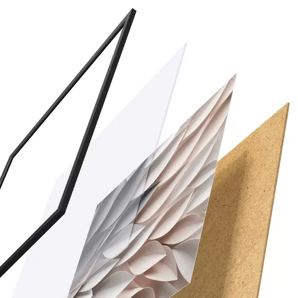 Das Poster besteht aus einem Rahmen, Plexiglas, einem gedruckten Bild und einer Rückwand aus Spanplatten. Dank der Halterungen auf der Rückseite kann das Poster sofort an die Wand gehängt werden.