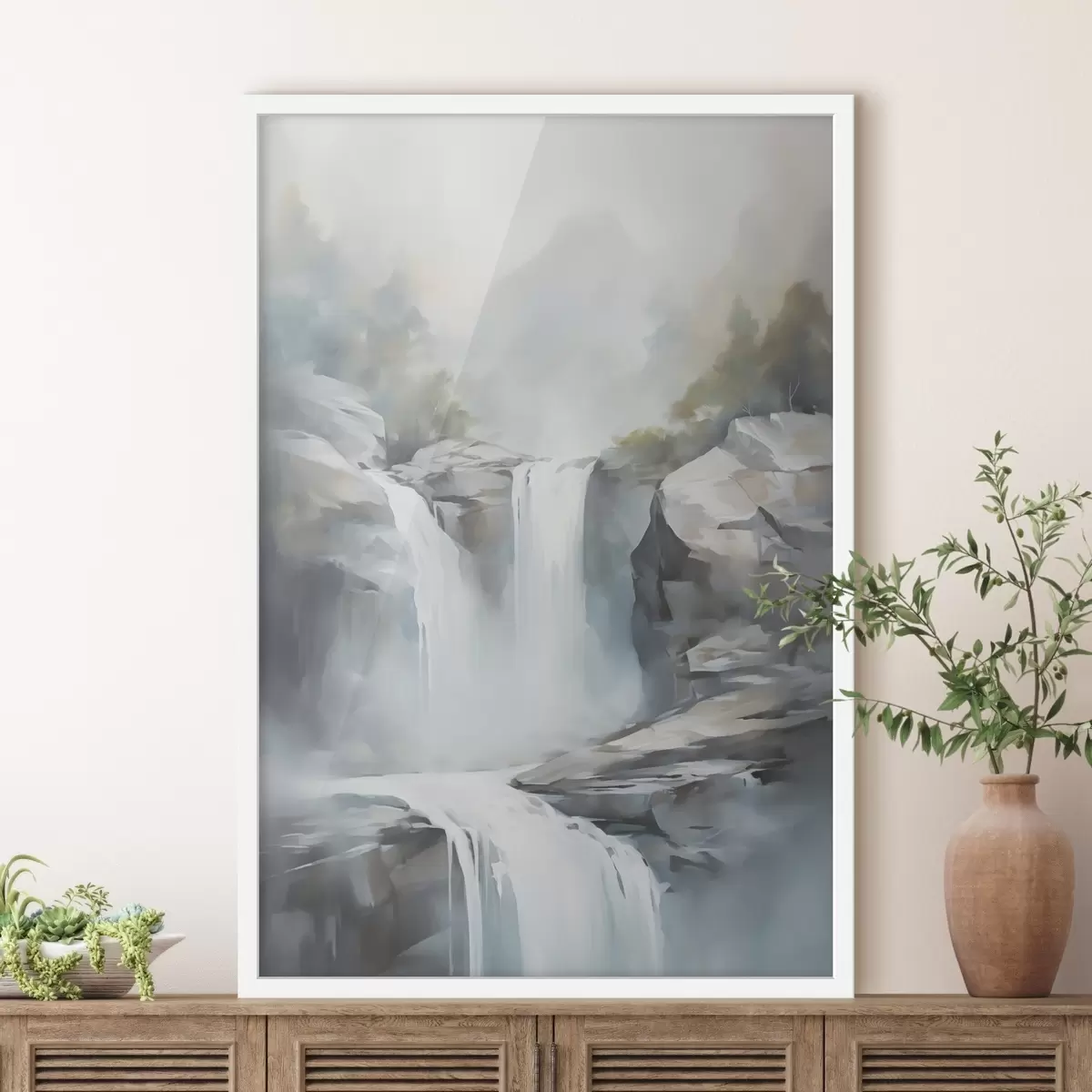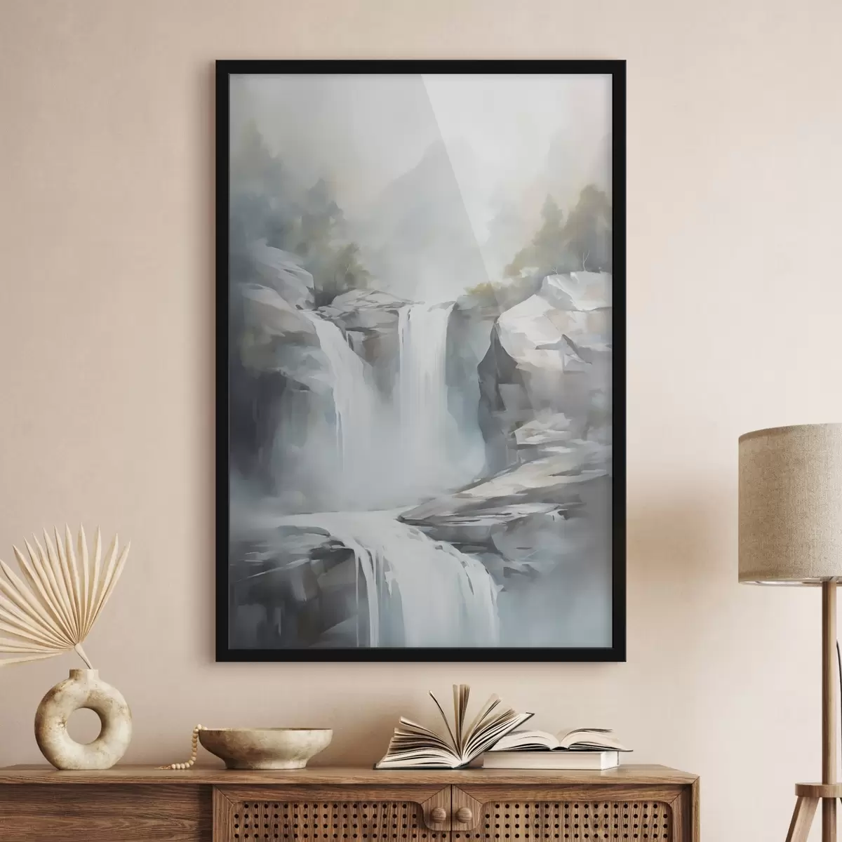 Poster Nachbildung eines Wasserfalls in einem Gemälde Nr f48416