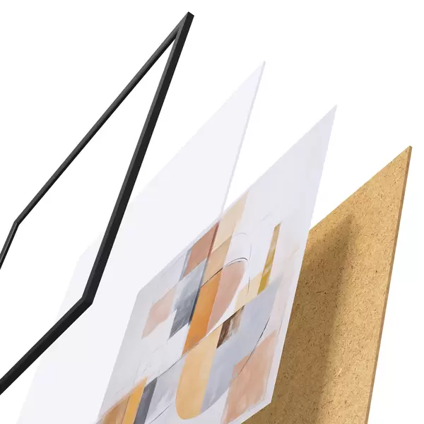 Das Poster besteht aus einem Rahmen, Plexiglas, einem gedruckten Bild und einer Rückwand aus Spanplatten. Dank der Halterungen auf der Rückseite kann das Poster sofort an die Wand gehängt werden.