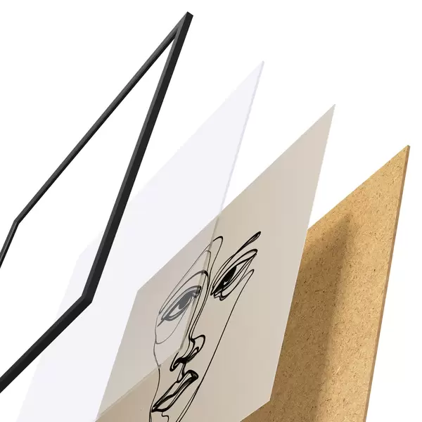 Das Poster besteht aus einem Rahmen, Plexiglas, einem gedruckten Bild und einer Rückwand aus Spanplatten. Dank der Halterungen auf der Rückseite kann das Poster sofort an die Wand gehängt werden.