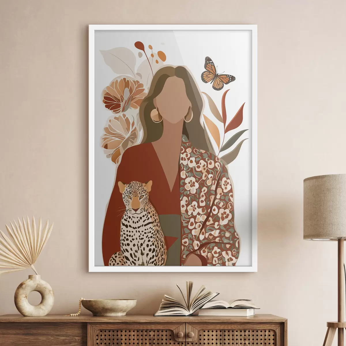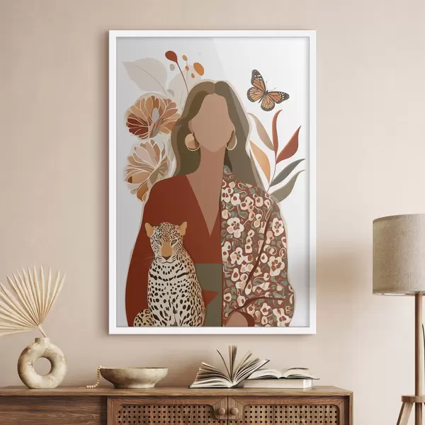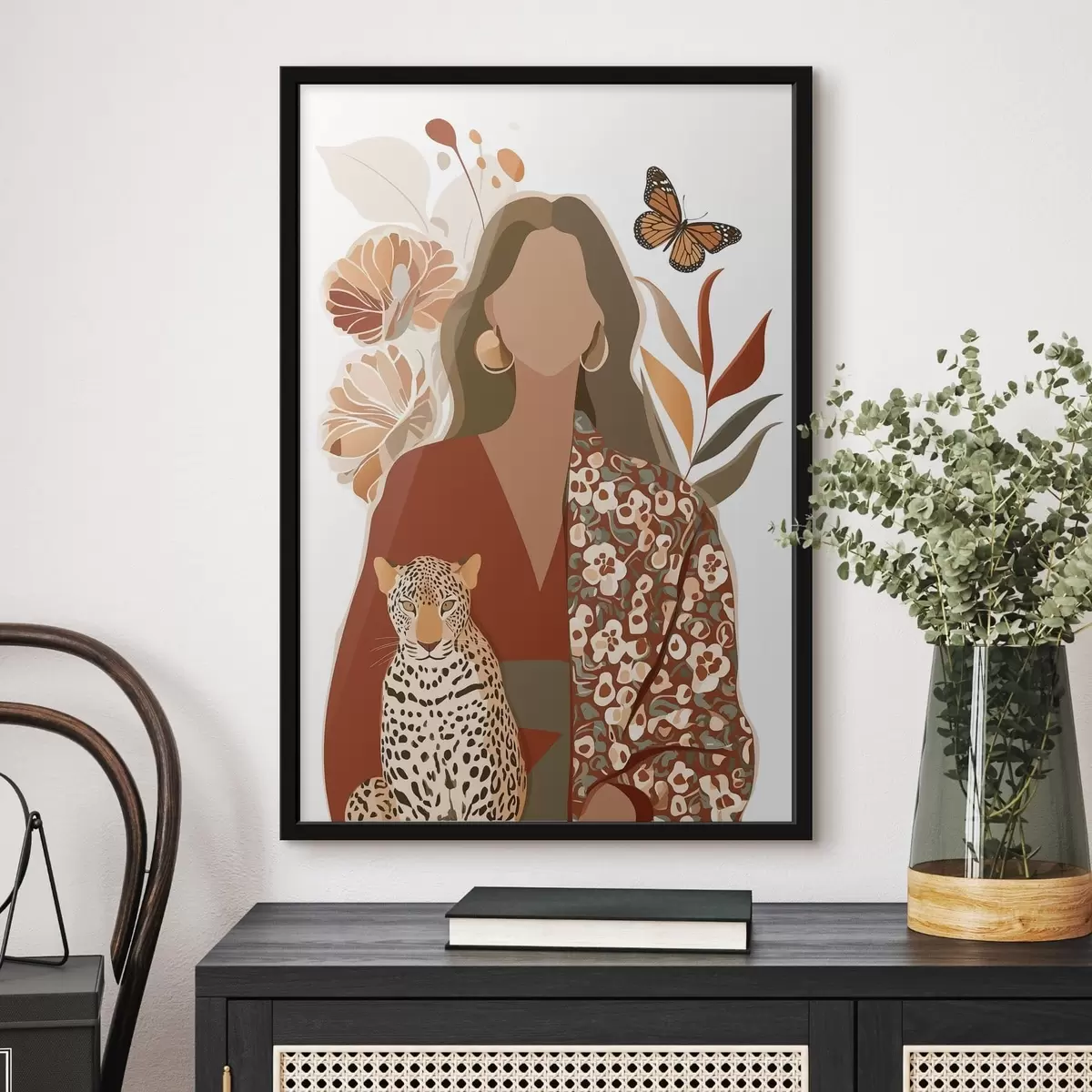 Poster Frau vor einem Blumenhintergrund Nr f48435