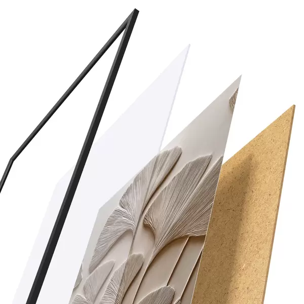 Das Poster besteht aus einem Rahmen, Plexiglas, einem gedruckten Bild und einer Rückwand aus Spanplatten. Dank der Halterungen auf der Rückseite kann das Poster sofort an die Wand gehängt werden.