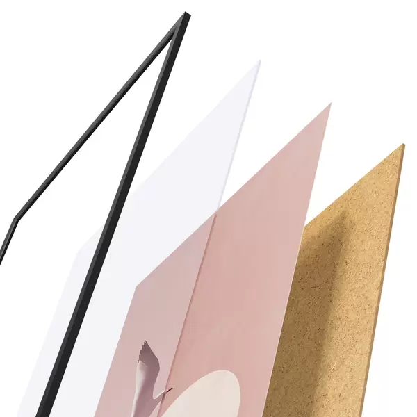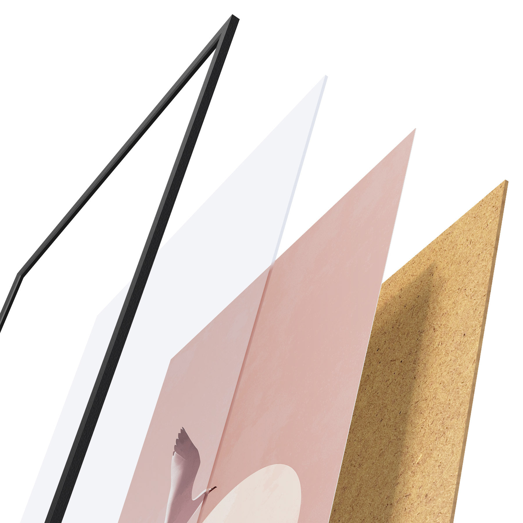 Das Poster besteht aus einem Rahmen, Plexiglas, einem gedruckten Bild und einer Rückwand aus Spanplatten. Dank der Halterungen auf der Rückseite kann das Poster sofort an die Wand gehängt werden.